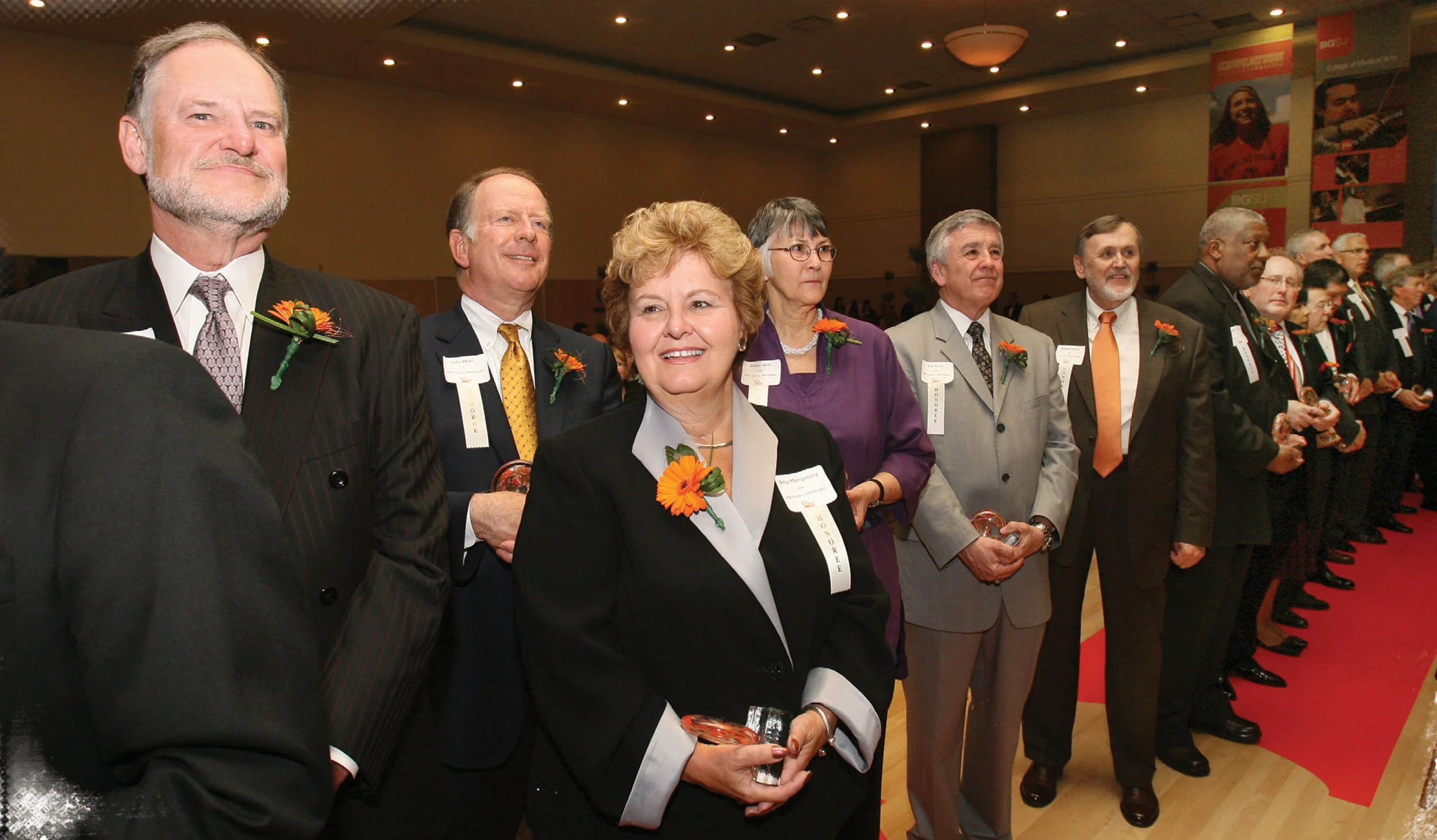 In addition to table settings, wall banners, written remarks and audiovisuals that created an environment celebrating BGSU’s rich history, each guest also received a full-color, 112-page program. The booklet featured a full-page biography and quote from each of the 100 honorees, as well as special highlights marking the historic milestone.