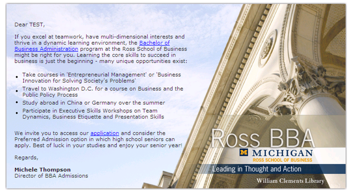 Marketing prompted prospects to first inquire via the Ross website, then apply, get admitted and finally enroll.