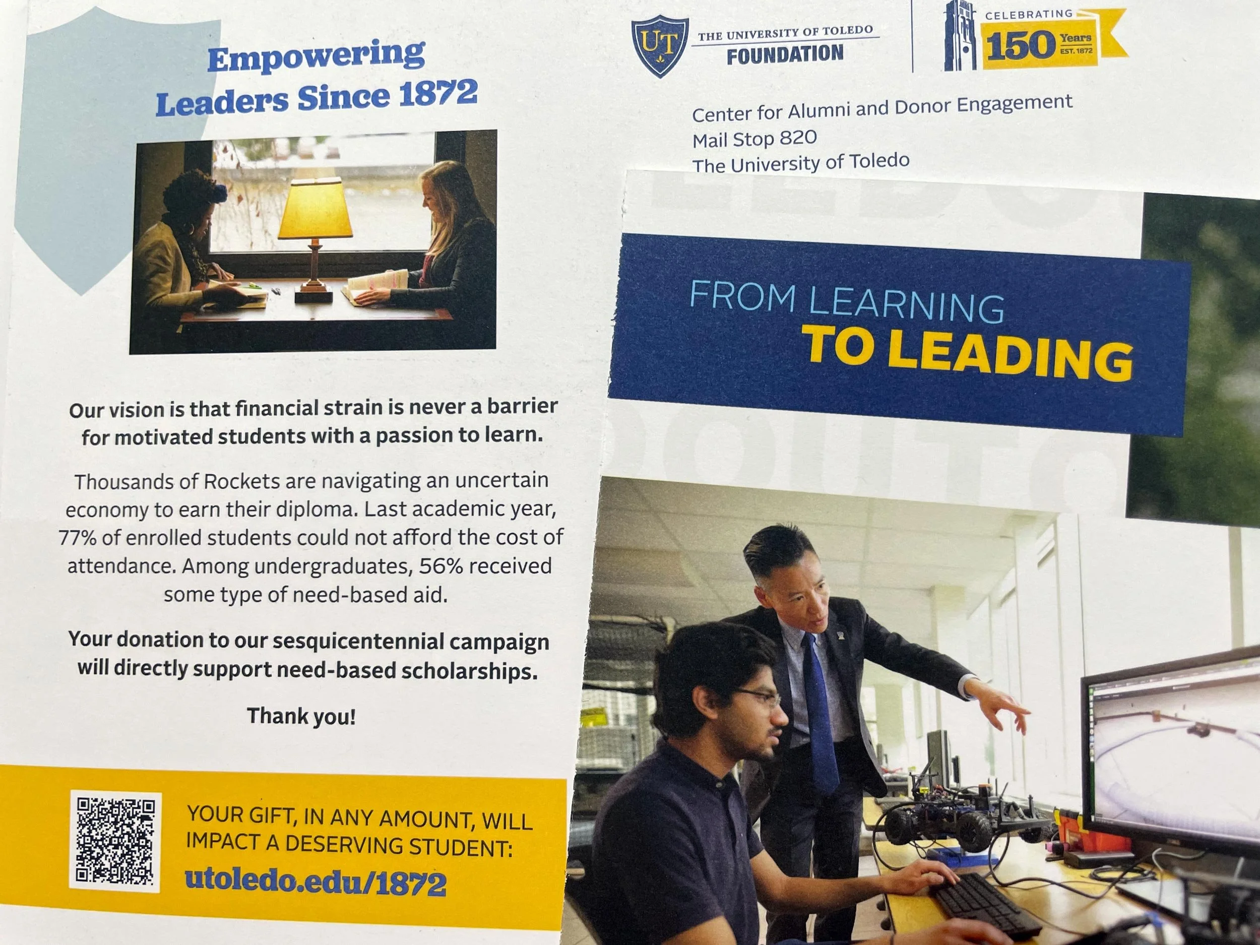 The University of Toledo celebrated its sesquicentennial in 2022 with a series of programs and a multi-million dollar fundraising campaign supporting need-based scholarships for deserving students. A stream of print, digital, social media and other materials drove the yearlong effort.